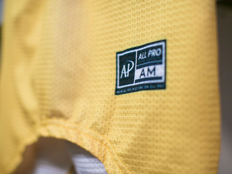 All Pro uses the most innovative fabrics used on the field, to maximize breathability, fit and durability. They Include our pro performance lite and pro performance stretch mesh on the gridiron, to our hyper lyte for the soccer pitch or hardwood. We’ve introduced a matte 36 spandex for wrestling track and compression sports and finish with our heavyweight hockey sweaters to withstand the demands of the hockey rink.